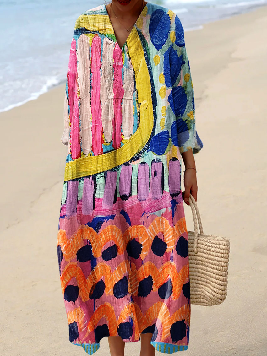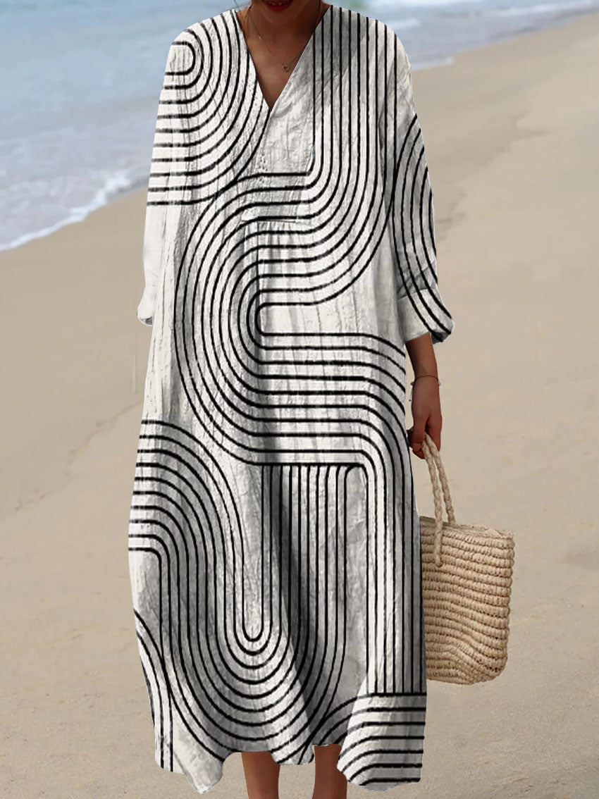 Women's Abstract Line Pattern Art Print Cotton Dress