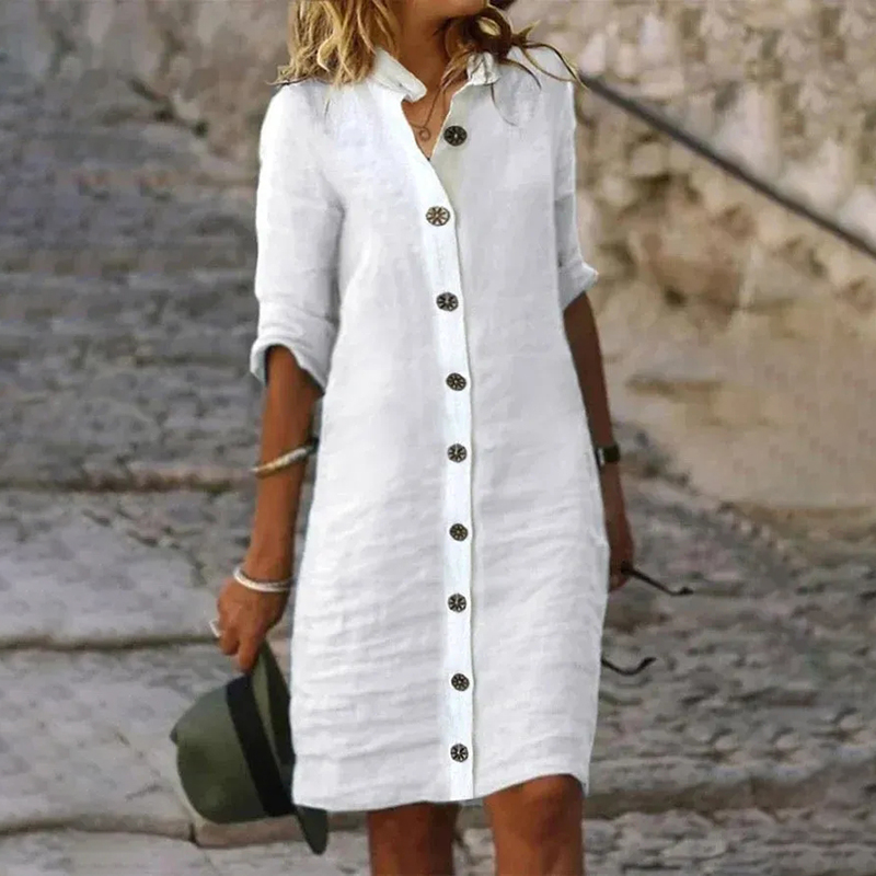 Women'S Shirt Collar Half Sleeve Cotton Linen Midi Dress