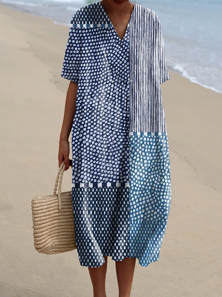 Women's Vintage Geometric Line Art Print Cotton Dress